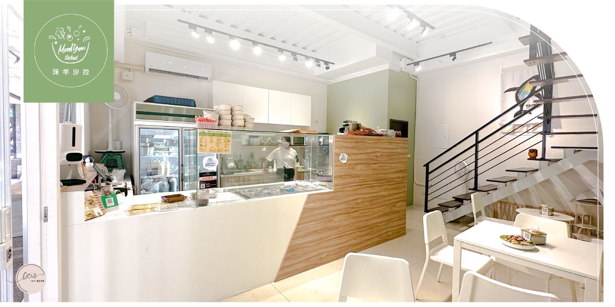初來乍到台中面臨中年的友人,人生地不熟面對家計感到徬徨,在夫妻一起做功課後發現台中的沙拉輕食市場或許能開闢一片天,於是決定開間沙拉店,以外帶為主、內用為輔,如此,櫃檯與門面吸睛就非常重要,以自然原味搭配北歐風亮眼舒適的設計,成功吸引目標族群指名購買
