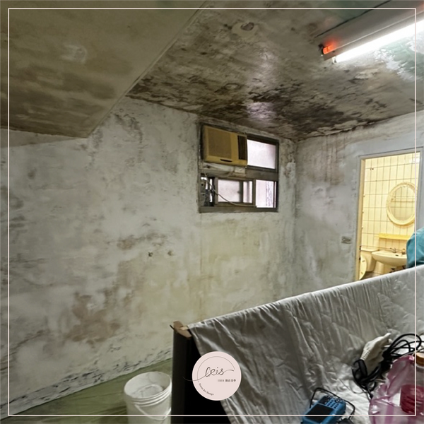 嚴重斑駁的壁癌處理與整體空間氛圍的營造