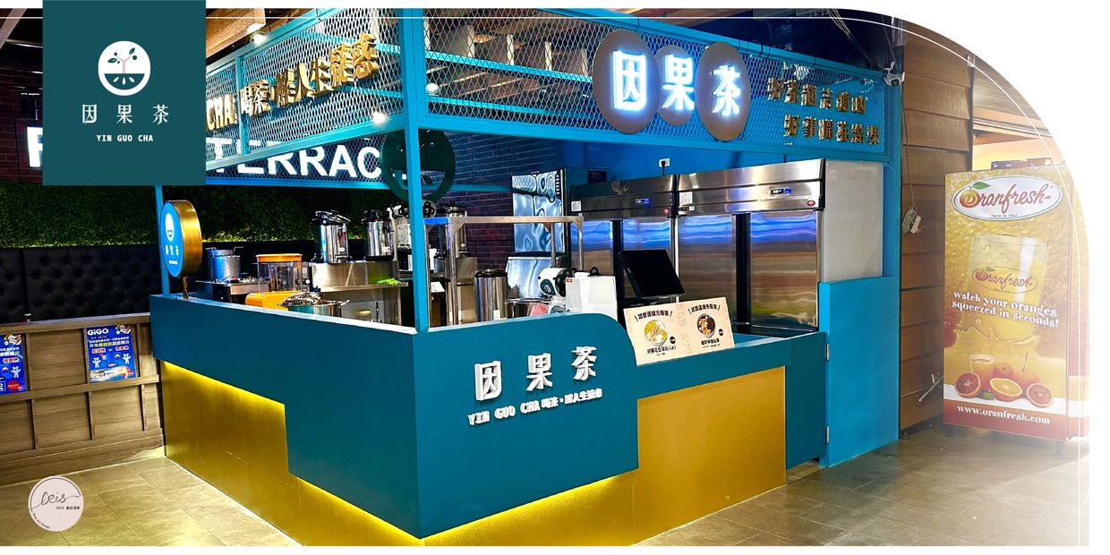 本次為「因果茶」品牌進駐南港環球美食街,製作一系列的立體字與發光字,點綴在櫃位中讓品牌訴求與風格立現,效果吸睛,吸引路過的民眾也來點一杯因果茶!